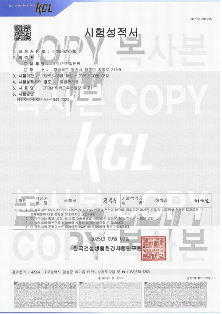 시험 성적서 및 인증서