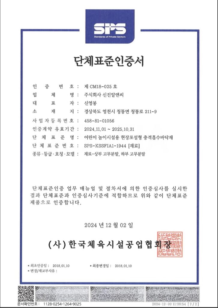 SPS-KSSFIA1-1944:2017 (어린이놀이시설탄성포장재) KS F 3888-2 : 2016 (체육시설탄성포장재)