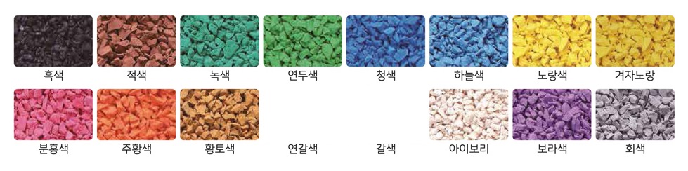 – 내후성 내오진성 내마모성 우수 – 내열성 및 내일광성 – 자외선 COLOR 신뢰도 우수 – 탄성과 안전성이 탁월하여 피로를 최소화한다. – 다양한 색상과 디자인으로 아름답고 쾌적한 환경연출 – 특수성이 좋아 우천시 미끄러지지 않는다. – 특허받은 친환경 방향 고무분말로 현장 시공후 장기간 향기가 난다.